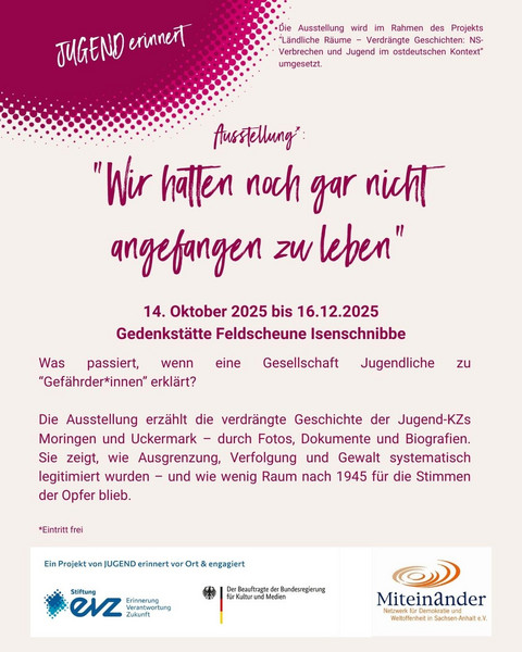 Die Ausstellung ist vom 14. Oktober bis 16. Dezember 2025 im Dokumentationszentrum der Gedenkstätte Feldscheune Isenschnibbe Gardelegen zu sehen. Der Eintritt ist frei.